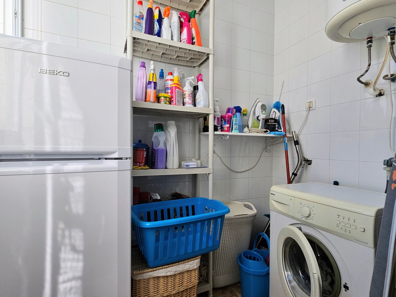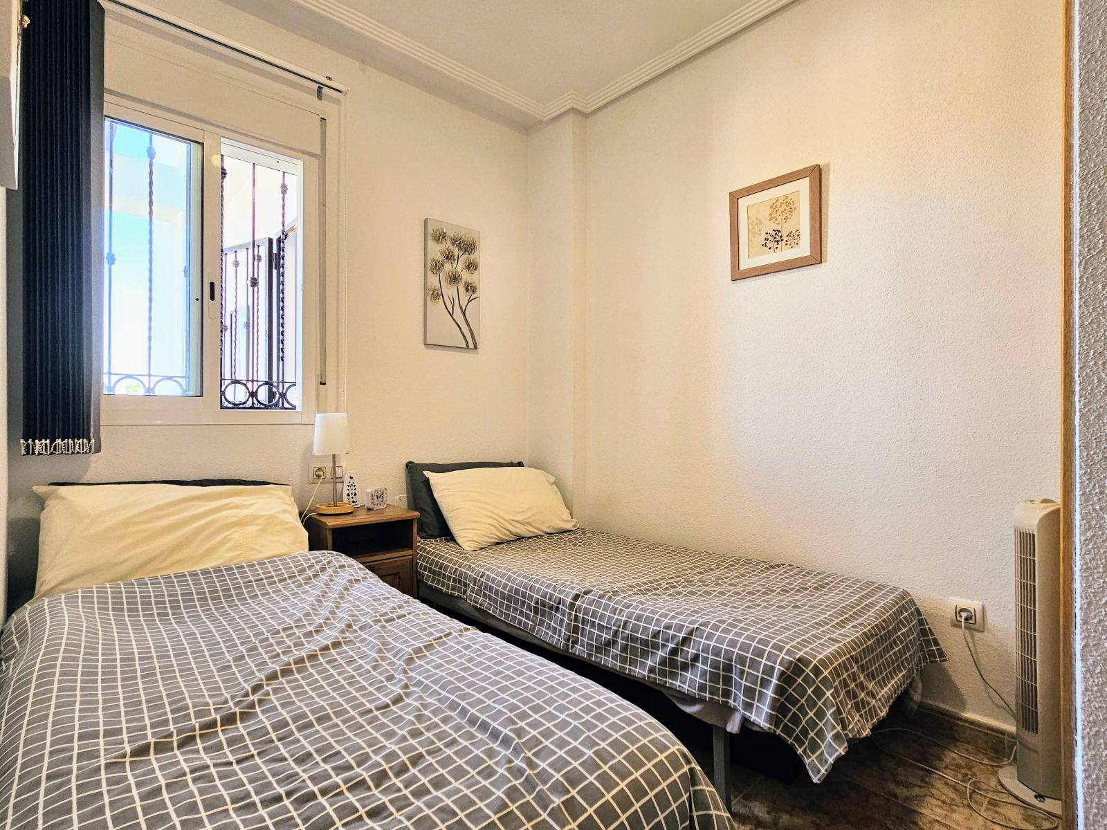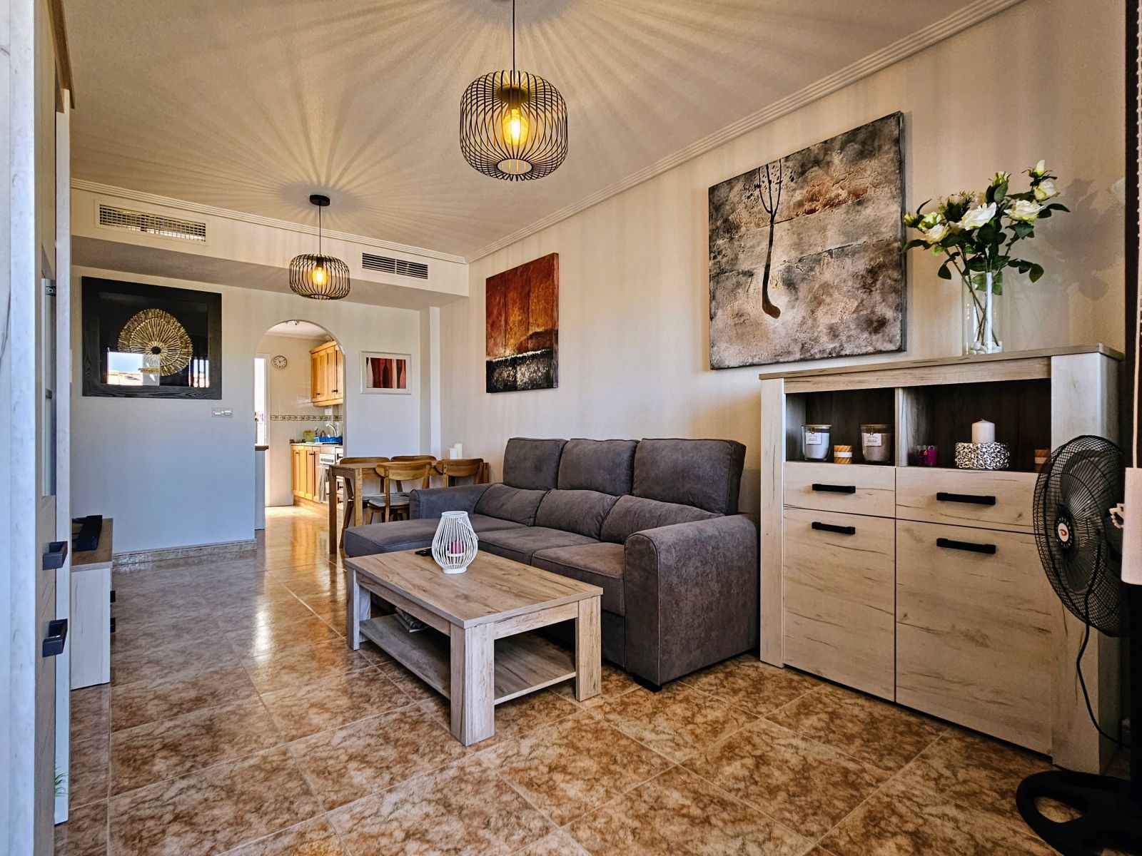 Tervetuloa tähän ylimmän kerroksen huoneistoon, jossa on oma osittain katettu parveke puistonäkymillä, sekä kattoterassi, jossa voit nauttia auringosta. Etuparvekkeelta tulet kauniisti sisustettuun olohuoneeseen, jonka yhteydessä on ruokailutila. Ruokailutilan takana on hyvinvarusteltu keittiö ja kodinhoitohuone. Päämakuuhuoneessa on runsaasti kaappitilaa ja parisänky. Makuuhuoneen ikkunassa on yksityisyydensuojakalvo, jonka ansiosta ulkoa ei näe huoneeseen sisään. Toisessa makuuhuoneessa on kaksi erillistä sänkyä. Kylpyhuoneessa on suihkukaappi. Keskusilmastointi pitää huoneilman mukavana ympäri vuoden.