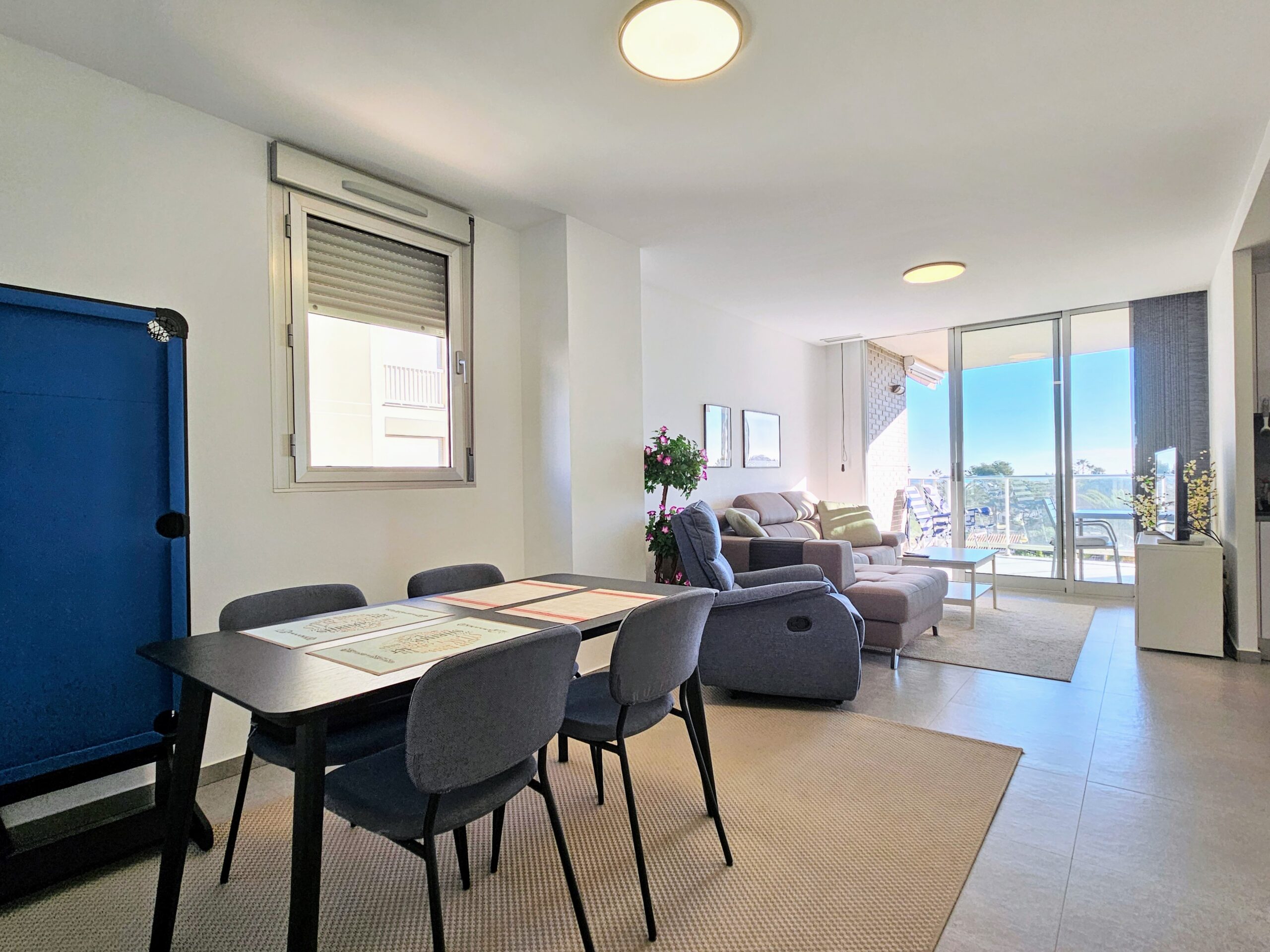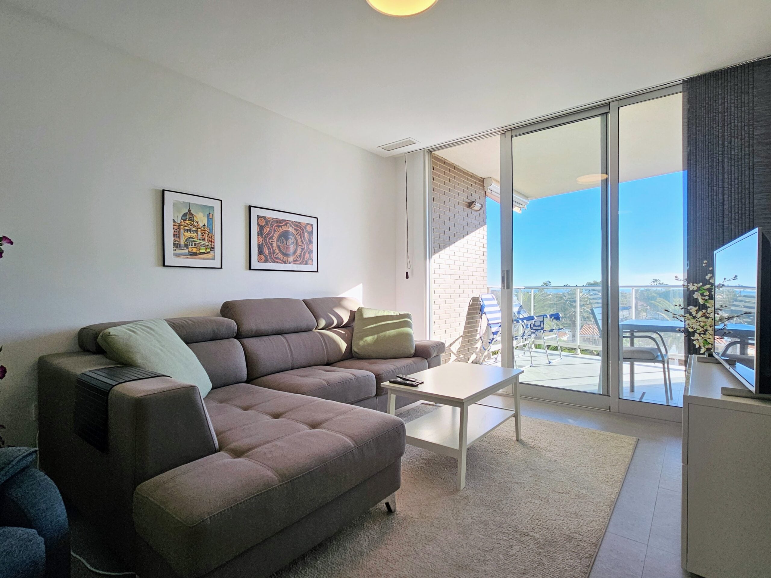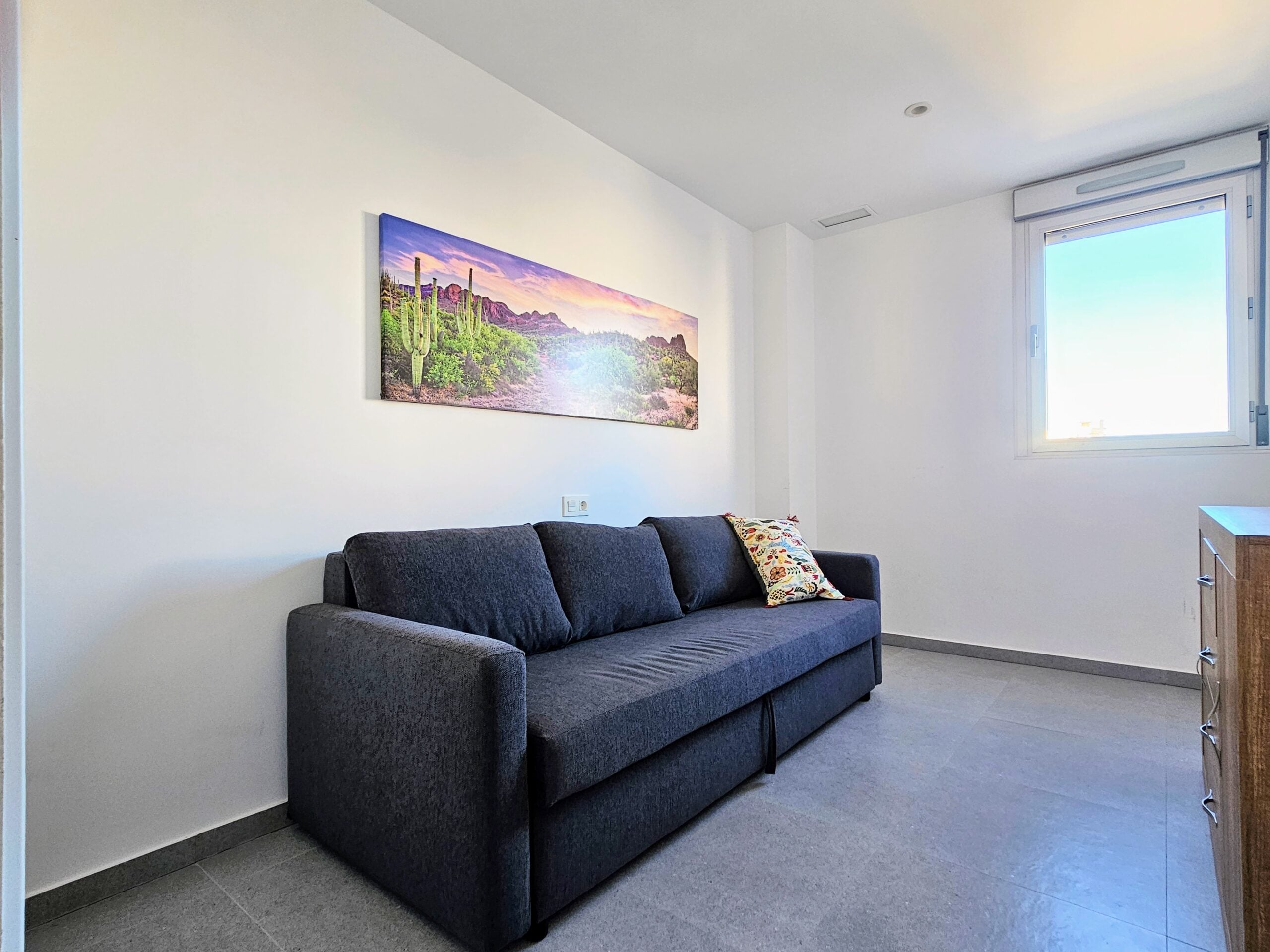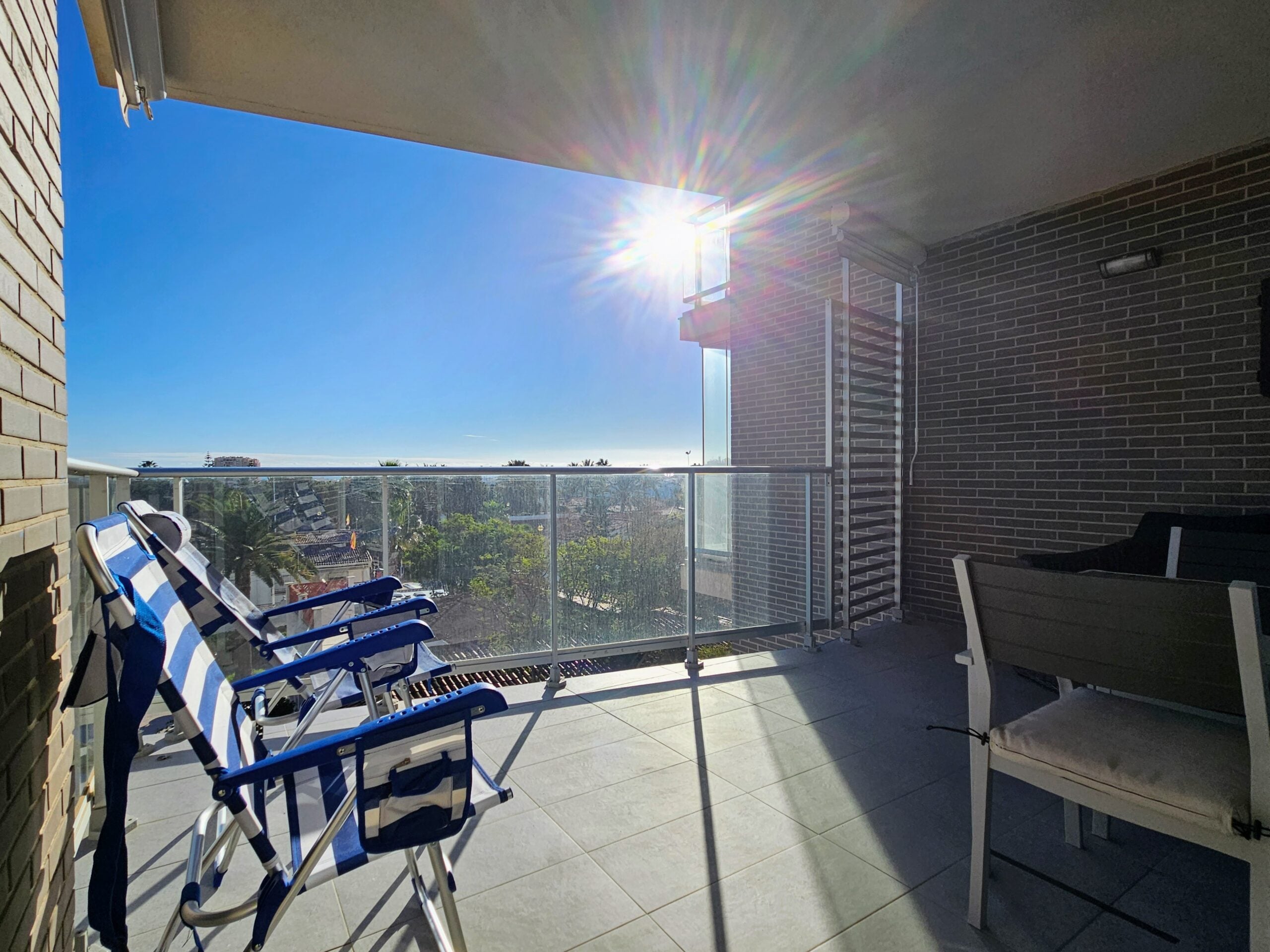 Asunnon keittiö on moderni ja hyvin varusteltu, olohuone on tilava, ja isot lasiovet päästävät sisään paljon luonnonvaloa. Tilavalla parvekkeella on mukava ihailla ympäristön maisemia, aina Välimerelle asti. Makuuhuoneissa on sisäänrakennetut vaatekaapit, päämakuuhuoneessa on oma en-suite kylpyhuone, toisessa makuuhuoneessa on vuodesohva.