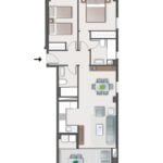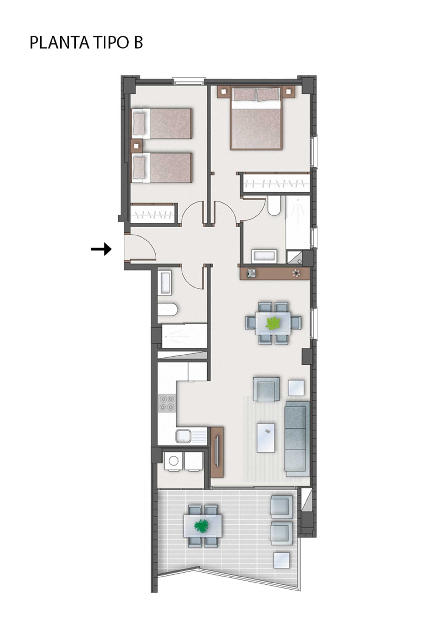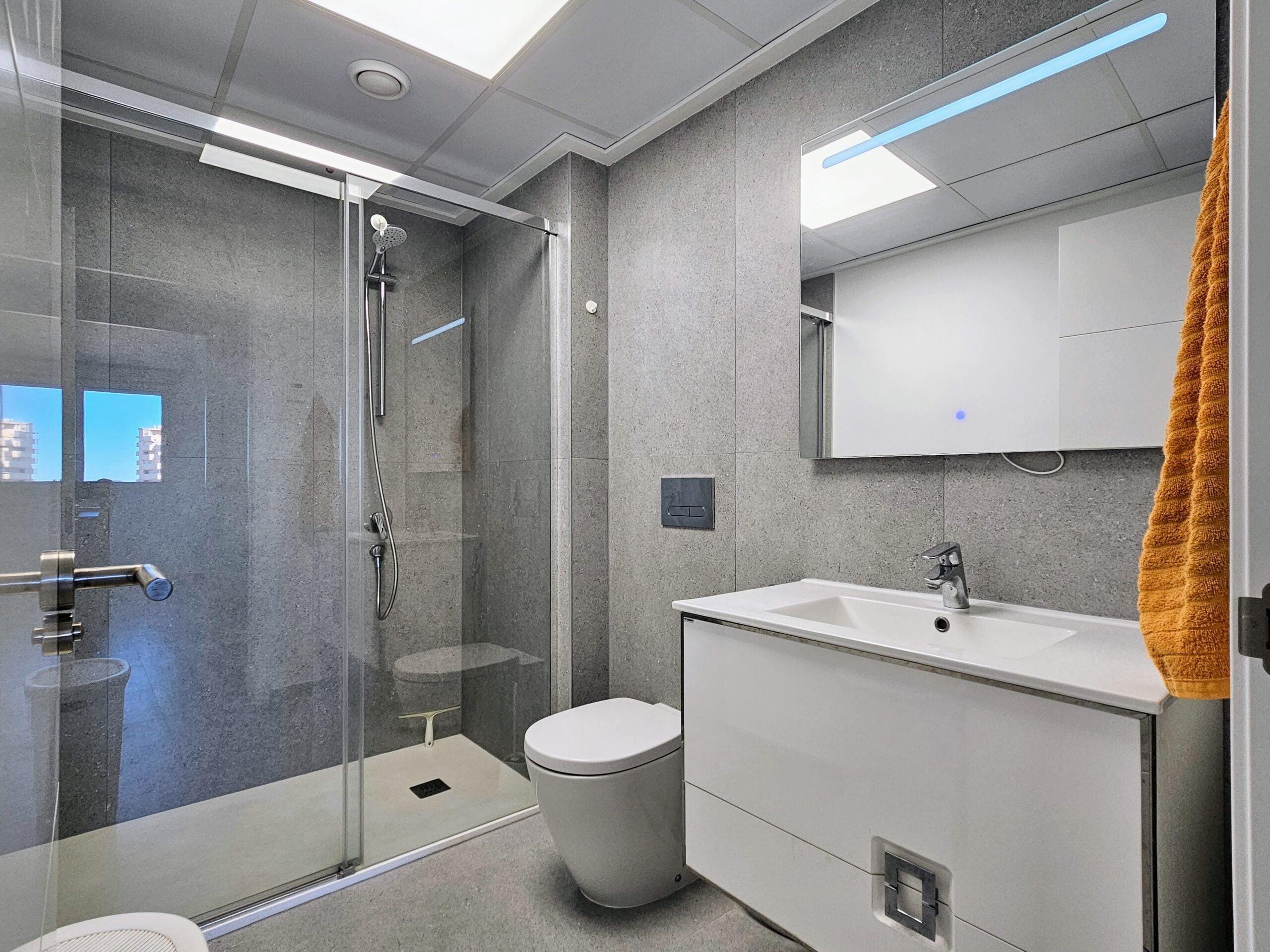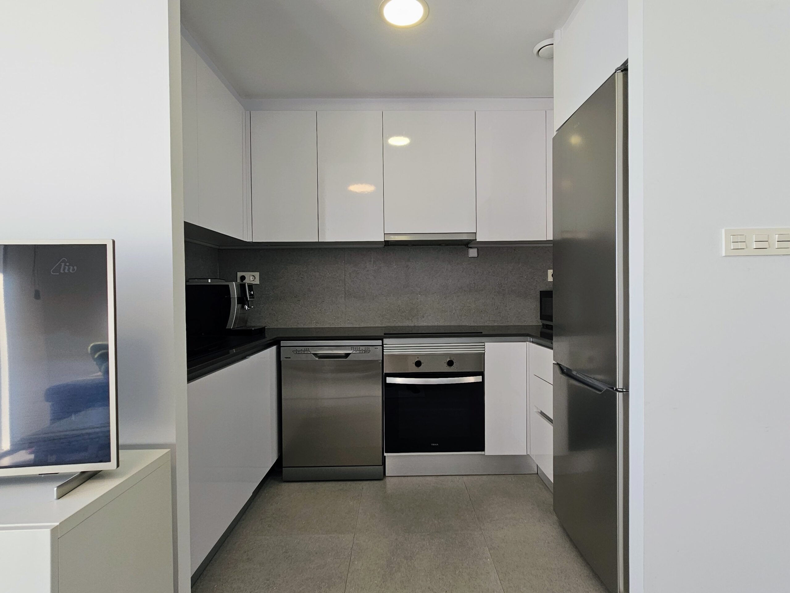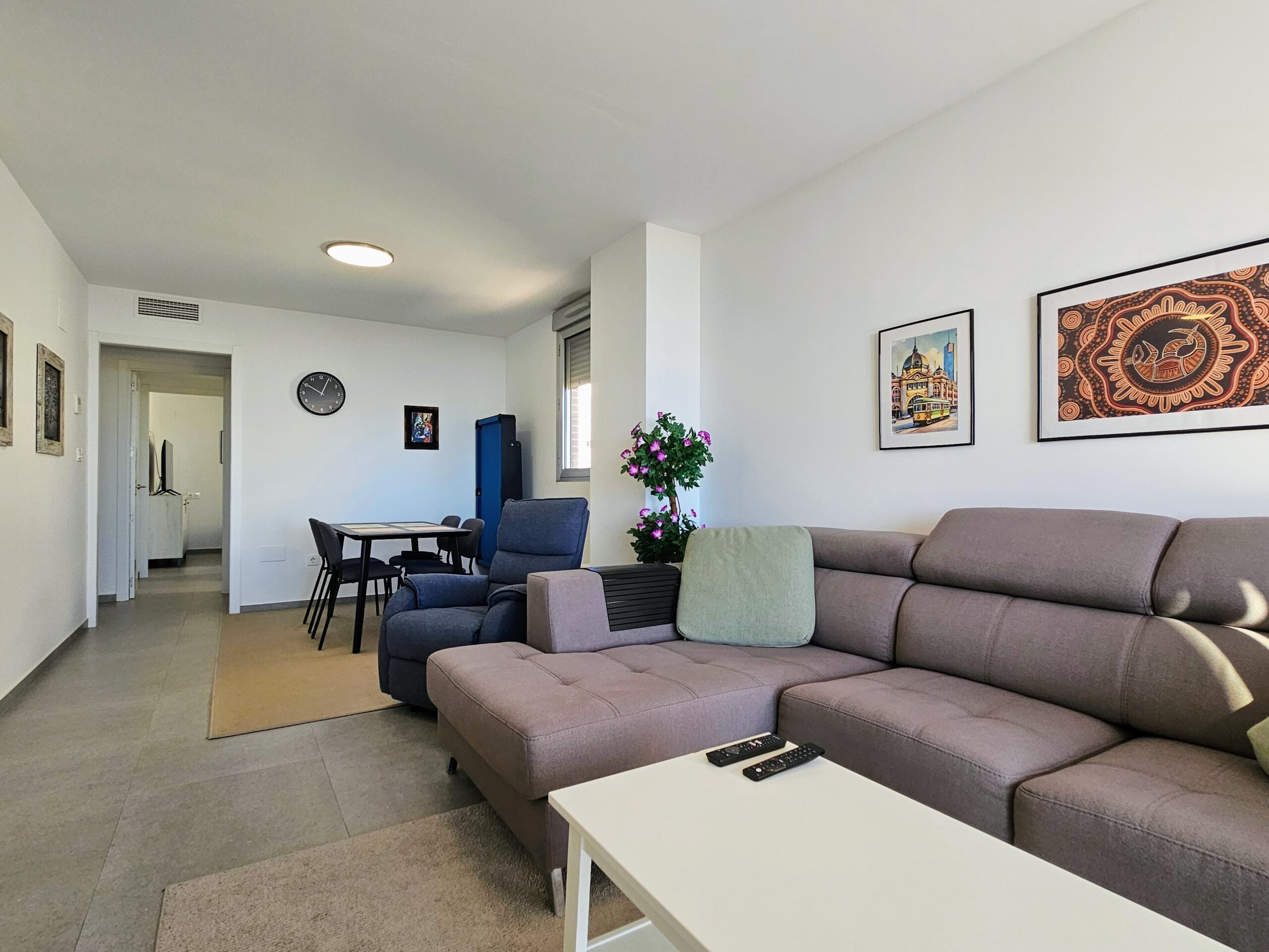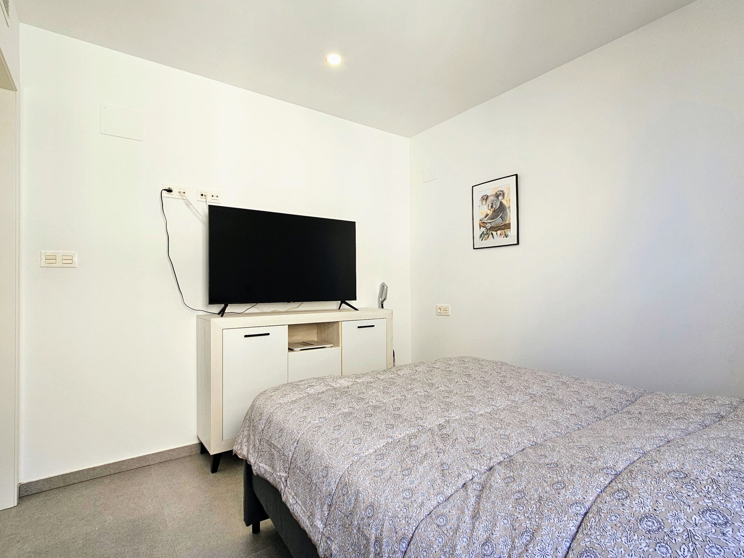 Asunnon keittiö on moderni ja hyvin varusteltu, olohuone on tilava, ja isot lasiovet päästävät sisään paljon luonnonvaloa. Tilavalla parvekkeella on mukava ihailla ympäristön maisemia, aina Välimerelle asti. Makuuhuoneissa on sisäänrakennetut vaatekaapit, päämakuuhuoneessa on oma en-suite kylpyhuone, toisessa makuuhuoneessa on vuodesohva.