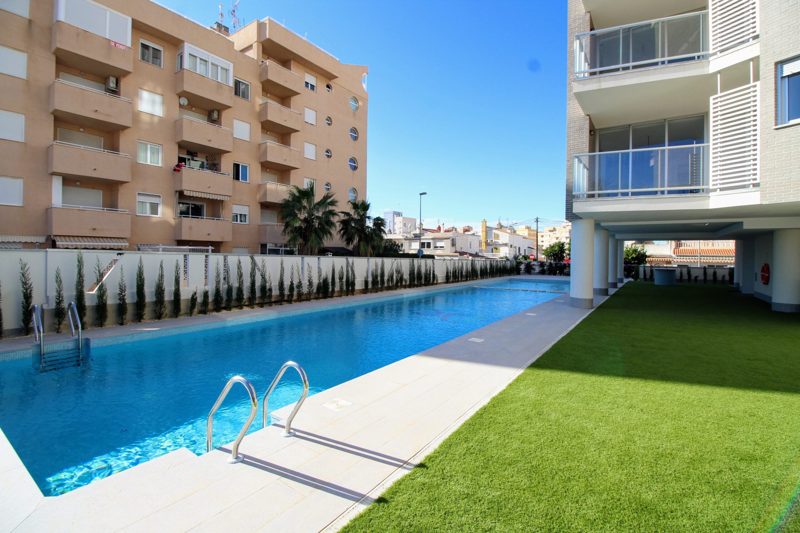Uusi kahden makuuhuoneen ja kahden kylpyhuoneen kerrostaloasunto Torreviejan keskustan pohjoispuolella Nueva Torreviejassa, vain vähän yli kilometrin rannasta.